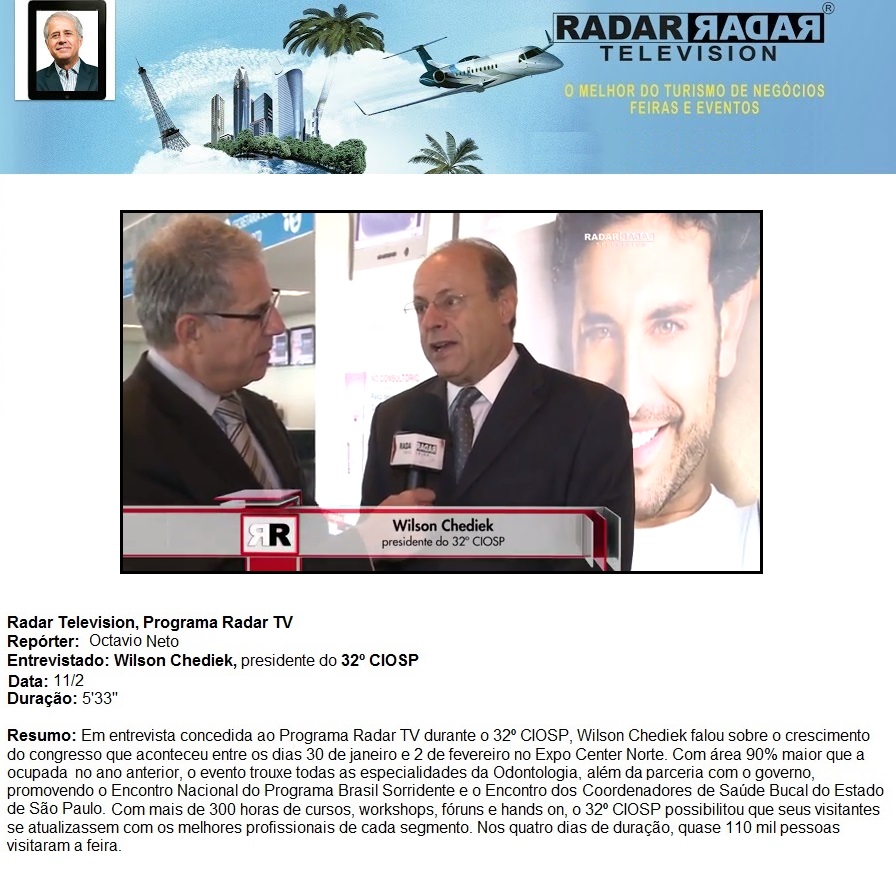 RADAR TELEVISION (PROGRAMA RADAR TV) - Entrevista com Wilson Chediek