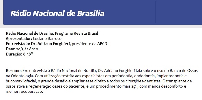 RÁDIO NACIONAL DE BRASÍLIA - Entrevista com Dr. Adriano Forghieri
