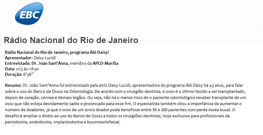 RADIO NACIONAL DO RIO DE JANEIRO - Entrevista com Dr. João Sant'Anna