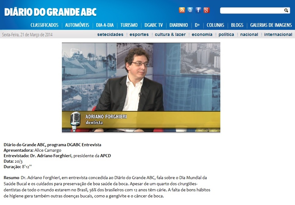 TV DIÁRIO DO GRANDE ABC (DGABCTV) - Entrevista com Dr. Adriano Forghieri
