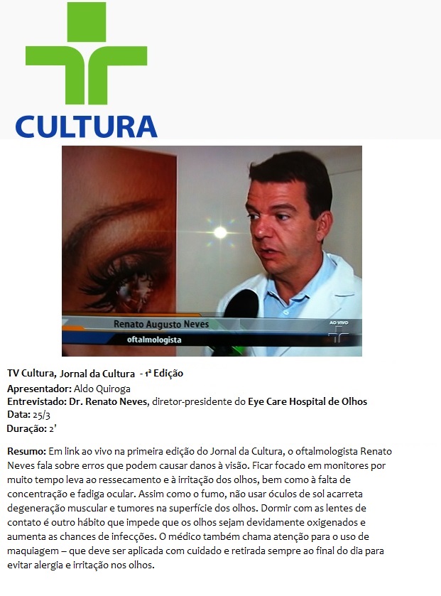 TV CULTURA (JORNAL DA CULTURA) - Entrevista com Dr. Renato Neves
