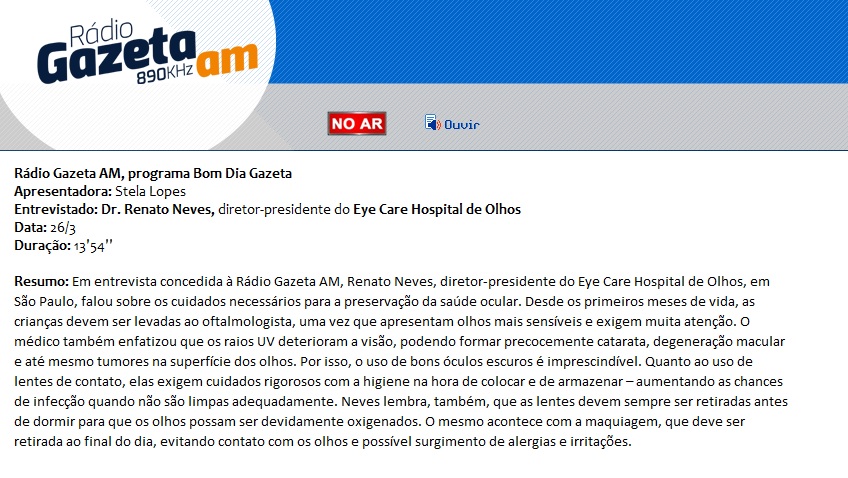 RÁDIO GAZETA AM - Entrevista com Dr. Renato Neves