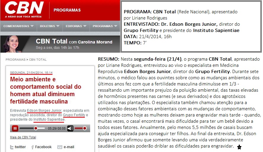 RÁDIO CBN (PROGRAMA CBN TOTAL) - Entrevista com Dr. Edson Borges Junior