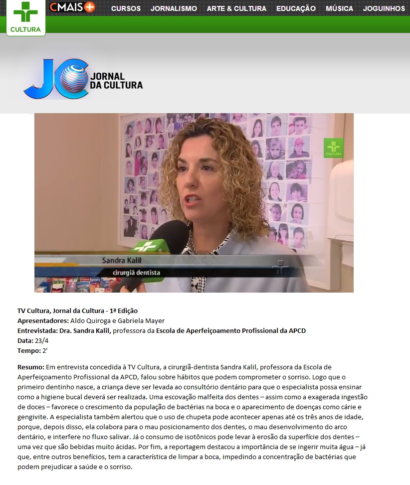 TV CULTURA (JORNAL DA CULTURA) - Entrevista com Dra. Sandra Kalil