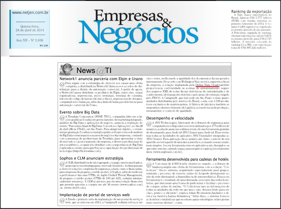 JORNAL EMPRESAS & NEGÓCIOS (IMPRESSO) - Implantação de portal de serviços web