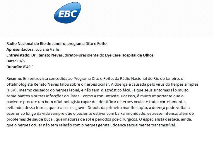 RÁDIO NACIONAL DO RIO DE JANEIRO - Entrevista com Dr. Renato Neves