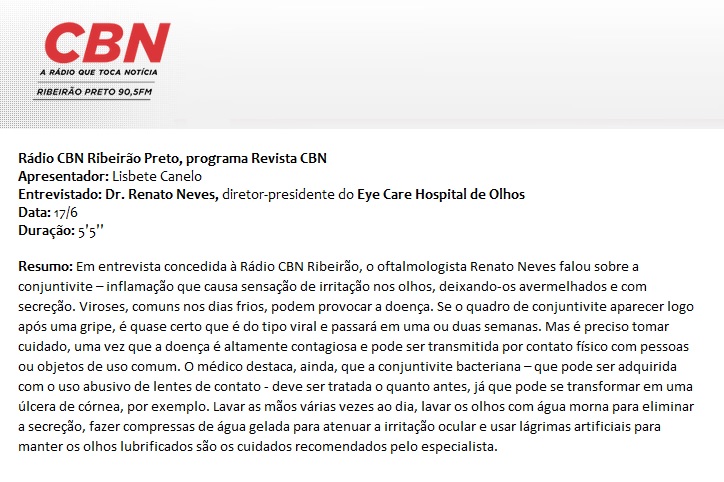 RÁDIO CBN RIBEIRÃO PRETO - Entrevista com Dr. Renato Neves