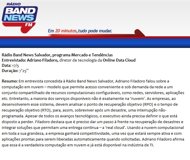 RÁDIO BAND NEWS (SALVADOR) - Entrevista com Adriano Filadoro