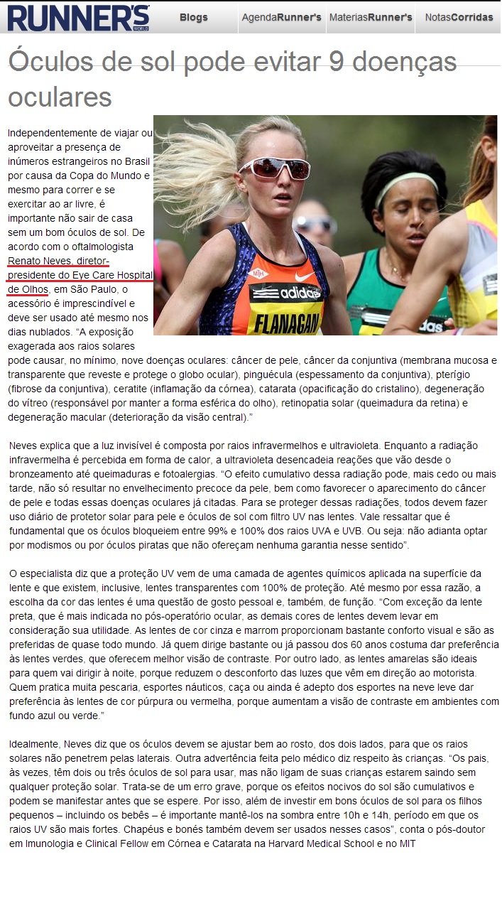 PORTAL RUNNER'S WORLD - Óculos de sol podem evitar 9 doenças oculares