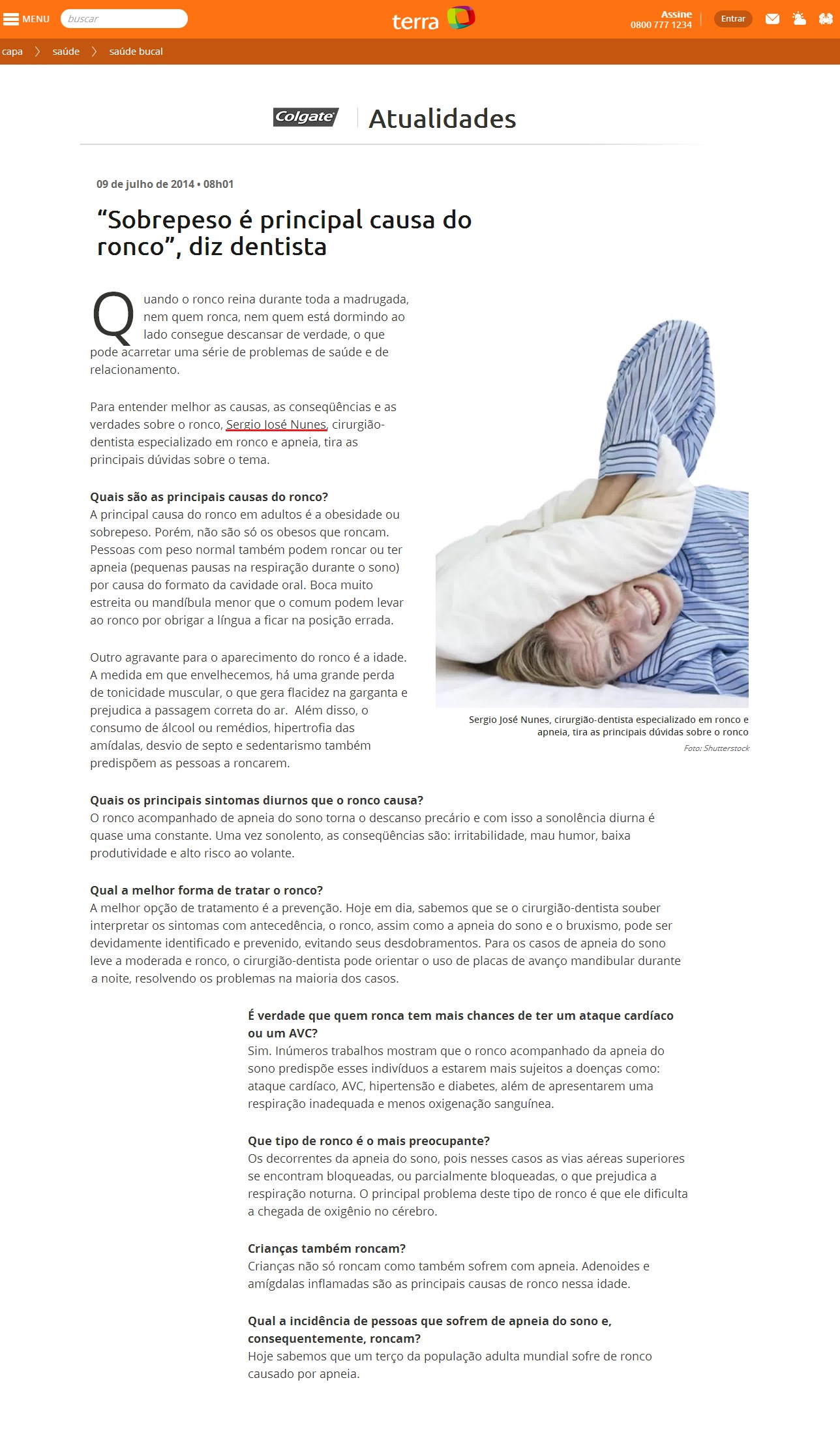 PORTAL TERRA - Sobrepeso é principal causa do ronco