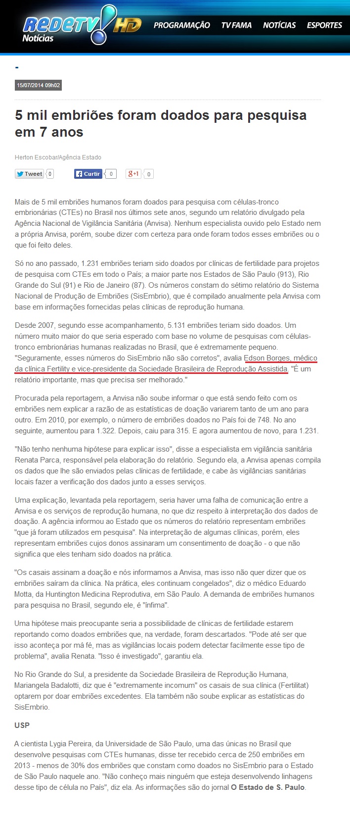 PORTAL REDE TV NOTÍCIAS - 5 mil embriões foram doados para pesquisa em 7 anos