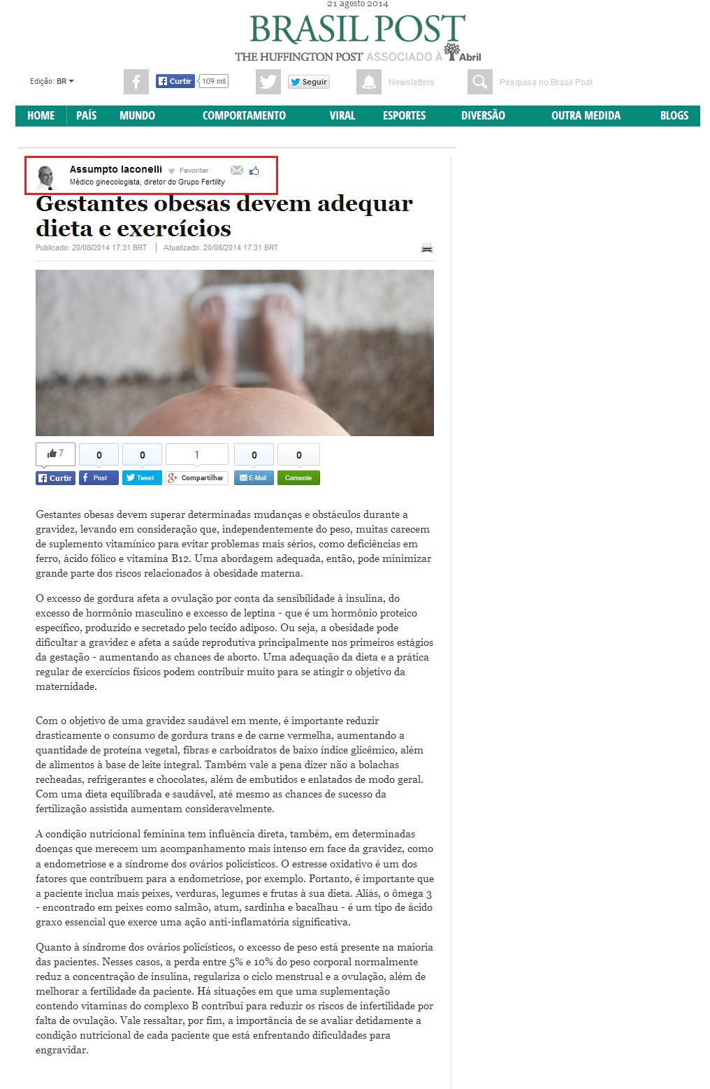 BRASIL POST - Gestantes obesas devem adequar dieta e exercícios