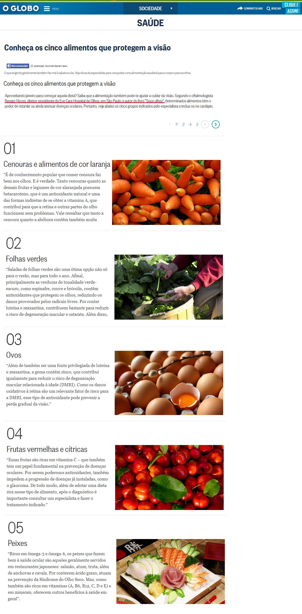 JORNAL O GLOBO (ONLINE) - Cinco alimentos que melhoram a visão