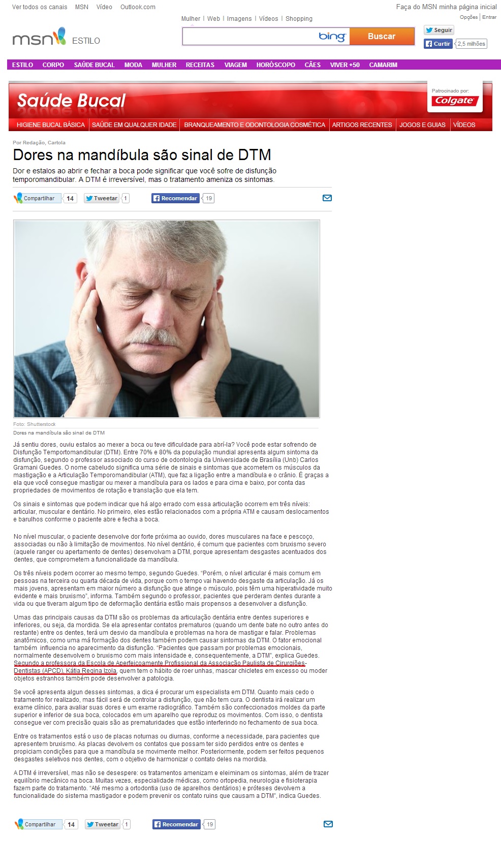 PORTAL MSN - Dores na mandíbula são sinal de DTM