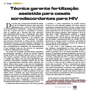Clipping REVISTA LABOR NEWS - Fertilização assistida para casais sorodiscordantes para HIV 13/10/2014