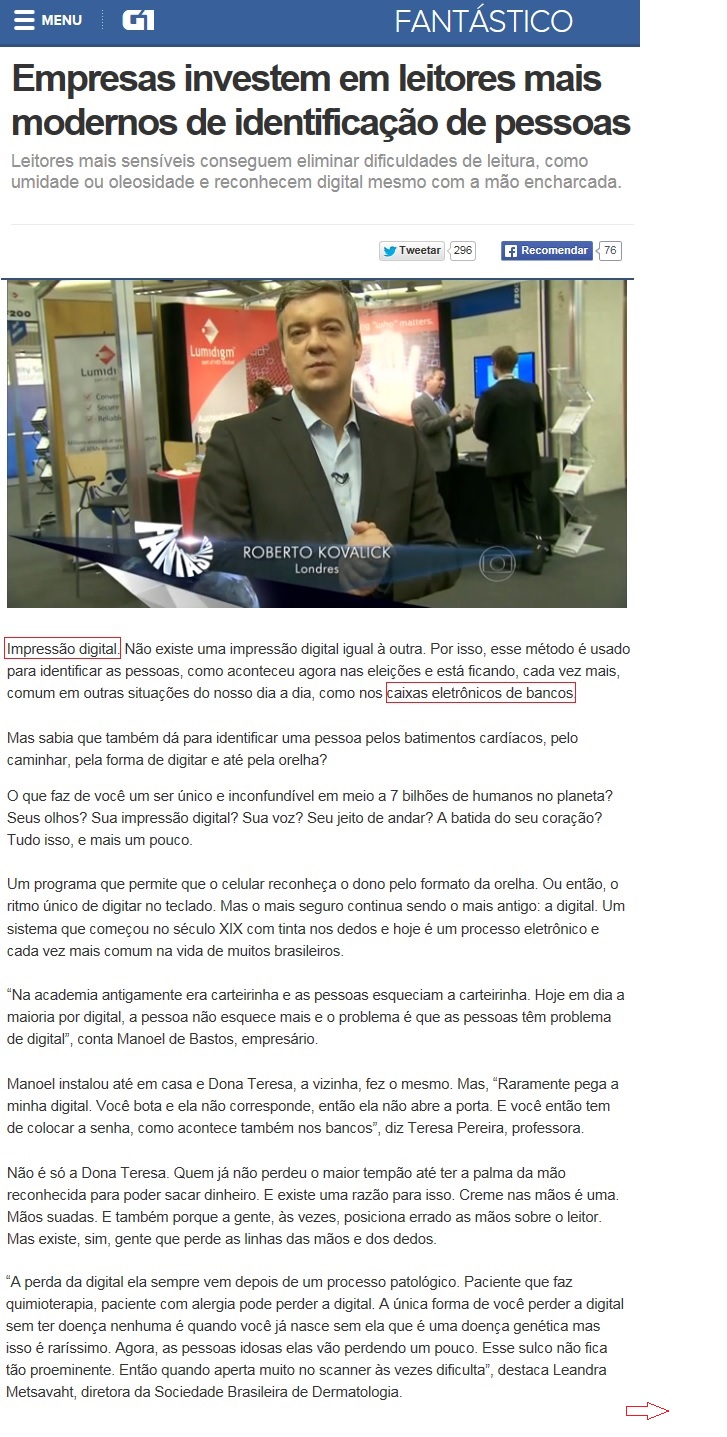 Clipping FANTÁSTICO (TV GLOBO) - Empresas investem em leitores mais modernos de identificação 27/10/2014