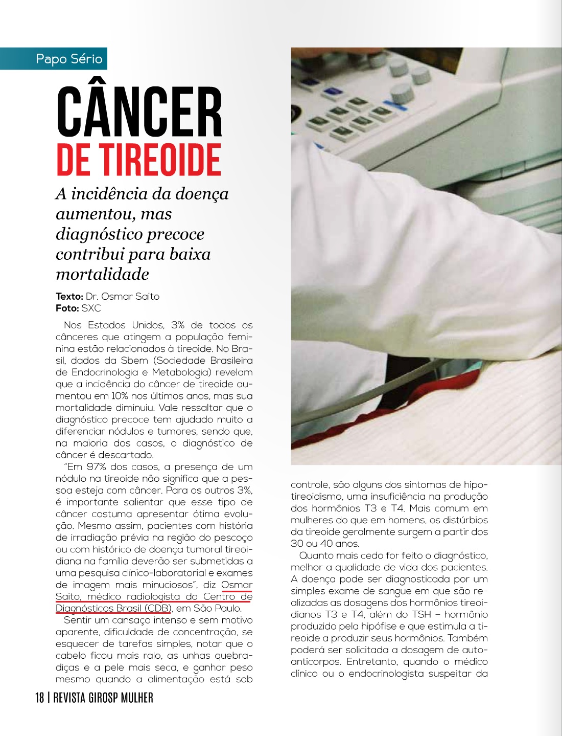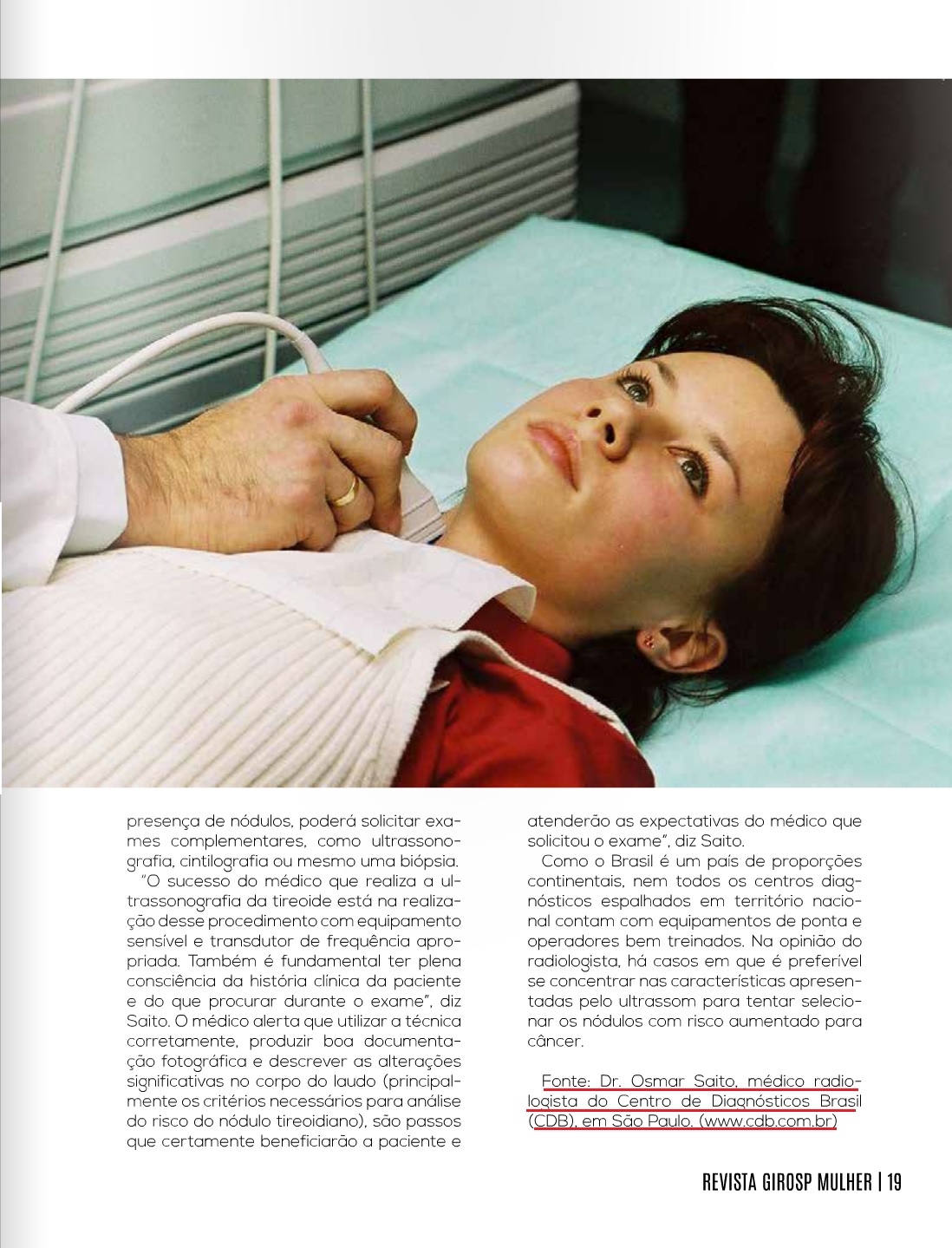 Clipping REVISTA GIRO SP MULHER - Câncer de tireoide: incidência da doença aumentou, mas diagnóstico precoce contribui para baixa mortalidade 04/11/2014
