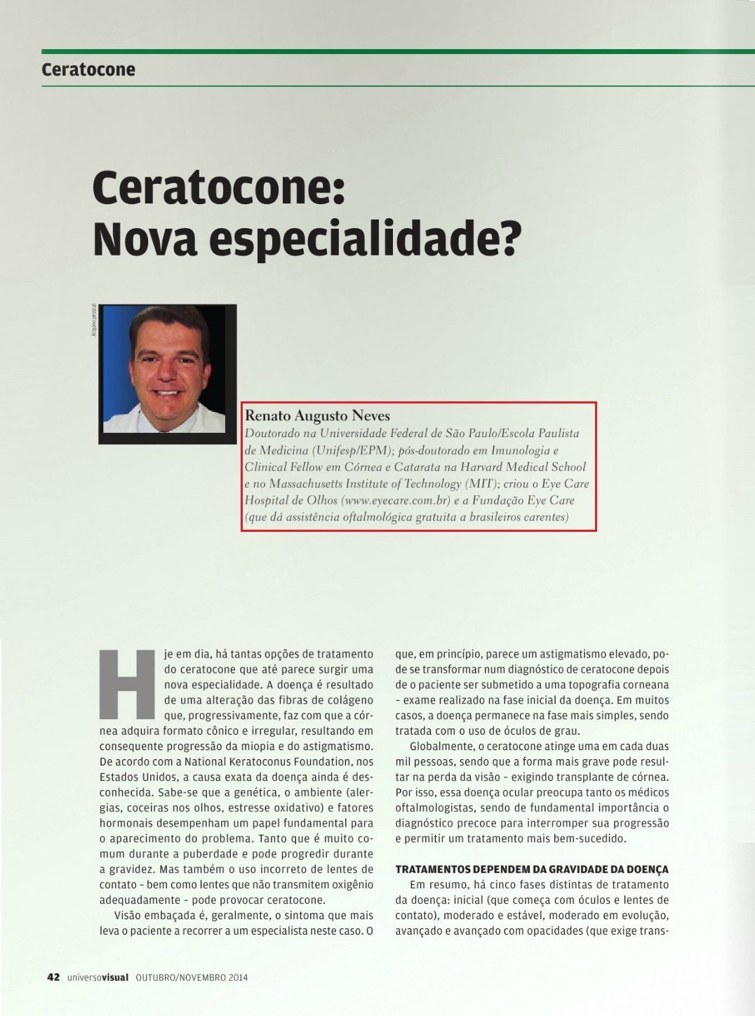 Clipping REVISTA UNIVERSO VISUAL (IMPRESSO) - Ceratocone: possibilidades de tratamento elevam a doença ao status de especialidade 12/11/2014