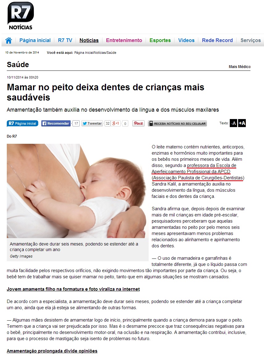 PORTAL R7 - Crianças que mamam no peito têm dentes mais saudáveis