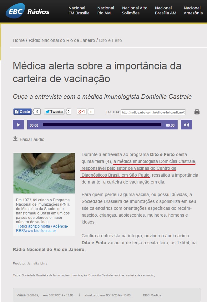 Clipping RÁDIO NACIONAL DO RIO DE JANEIRO (EBC RÁDIOS) - Entrevista com Dra. Domicília Castrale 09/12/2014