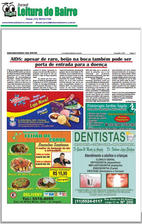 Clipping JORNAL LEITURA DO BAIRRO (IMPRESSO) -AIDS: apesar de raro, beijo também pode ser porta de entrada para a doença 07/01/2015