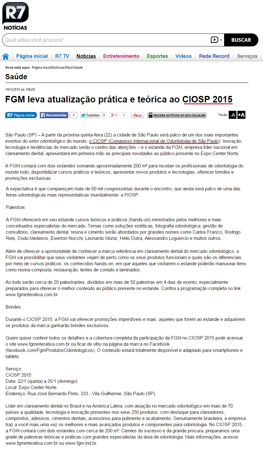 PORTAL R7 - FGM leva atualização prática e teórica ao CIOSP 2015