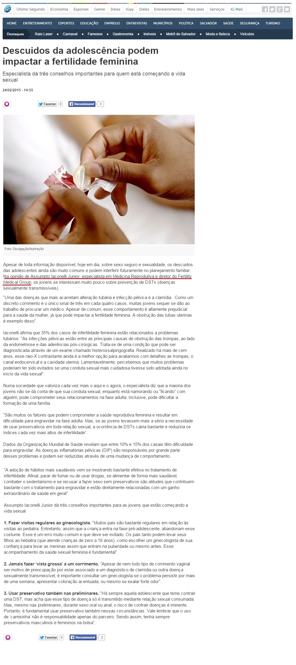 PORTAL IG - Descuidos da adolescência podem impactar fertilidade feminina