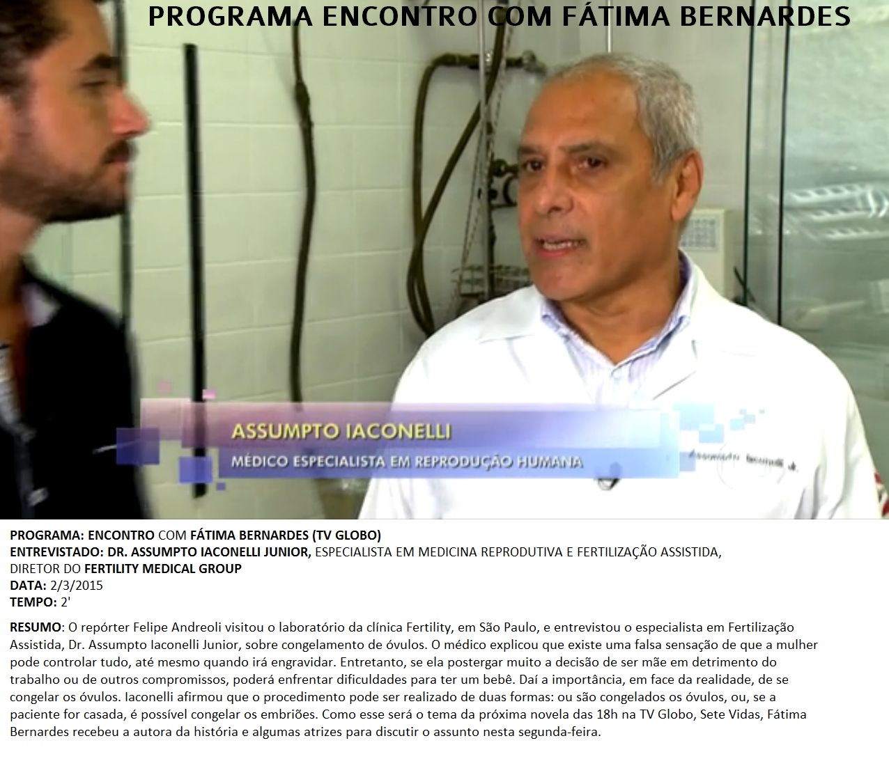 Clipping PROGRAMA ENCONTRO COM FÁTIMA BERNARDES (TV GLOBO) - Entrevista com Dr. Assumpto Iaconelli 02/03/2015