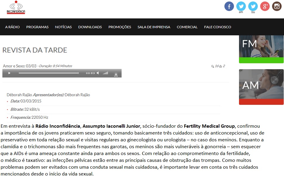 RÁDIO INCONFIDÊNCIA (MG) - Entrevista com Dr. Assumpto Iaconelli Junior