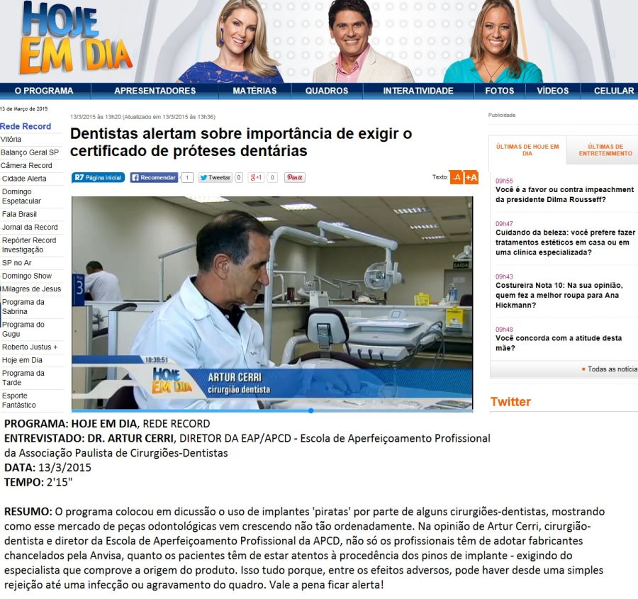 PROGRAMA HOJE EM DIA (TV RECORD) - O risco dos implantes piratas