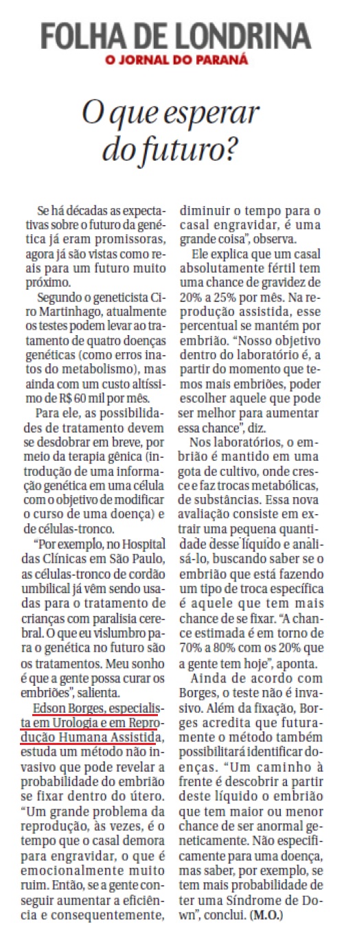 FOLHA DE LONDRINA (IMPRESSO) - Novos rumos da genética reprodutiva