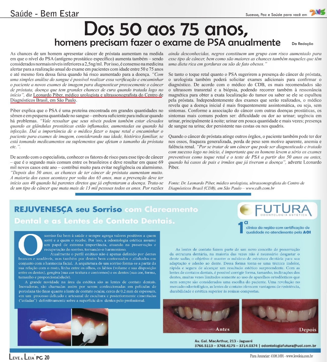 Clipping REVISTA LEVE & LEIA (IMPRESSO) - Dos 50 aos 75 anos, homens precisam fazer o exame de PSA anualmente 14/04/2015