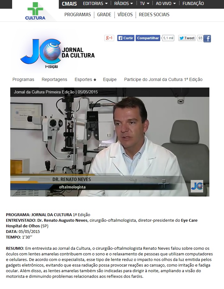 JORNAL DA CULTURA 1ª EDIÇÃO (TV CULTURA) - Entrevista com Dr. Renato Neves