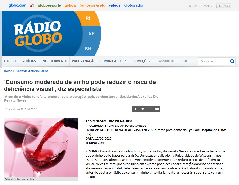 RÁDIO GLOBO RIO DE JANEIRO - Entrevista com Dr. Renato Neves