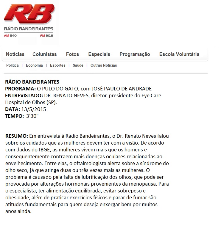 RÁDIO BANDEIRANTES - Entrevista com Dr. Renato Neves