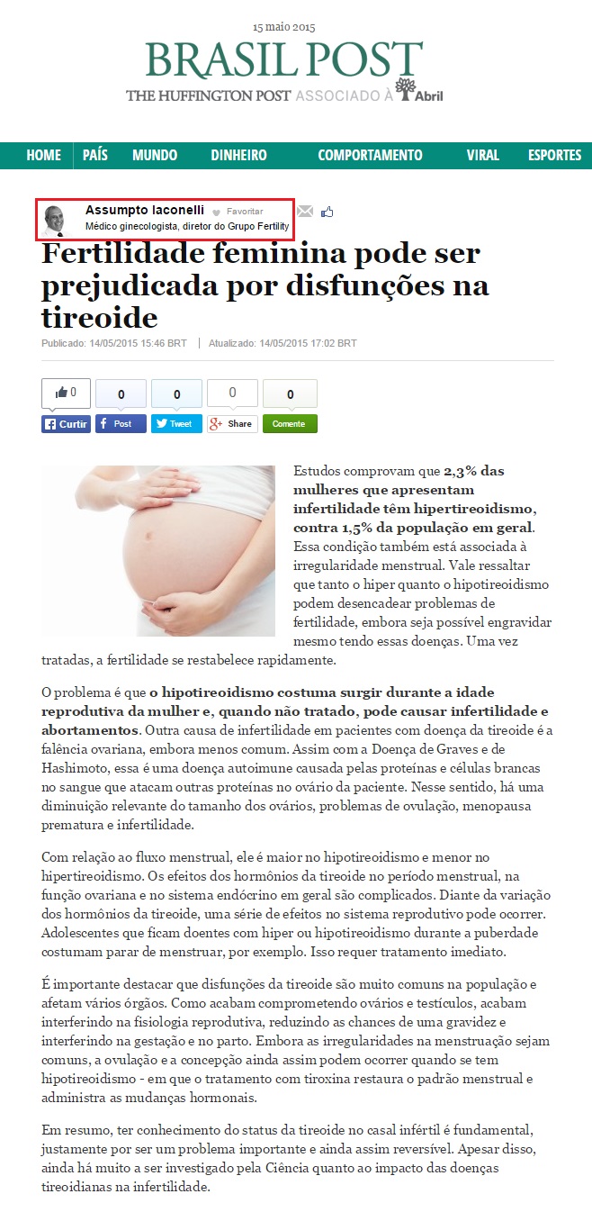 Clipping BRASIL POST - Fertilidade feminina pode ser prejudicada por disfunções na tireoide 15/05/2015