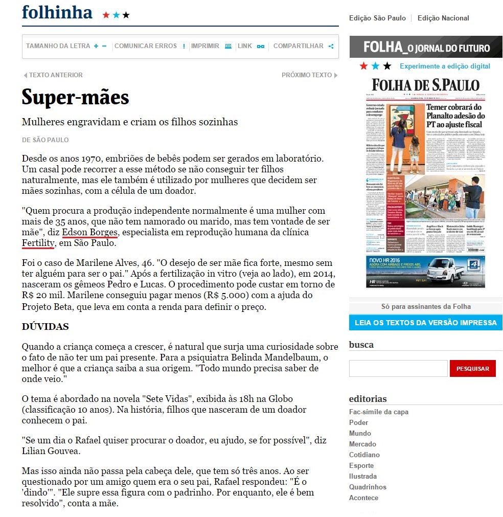 JORNAL FOLHA DE S. PAULO (IMPRESSO) - Super-mães