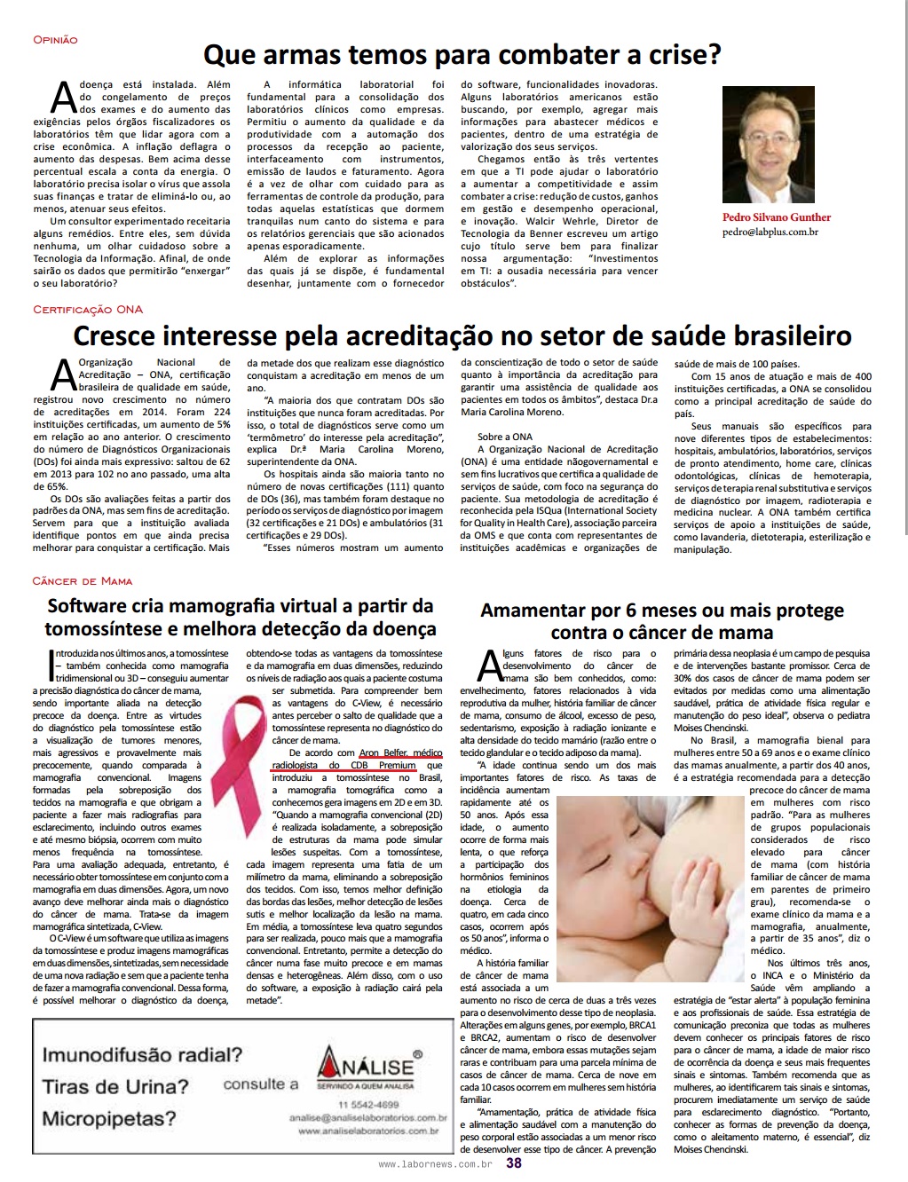 Clipping REVISTA LABOR NEWS - Software cria mamografia virtual a partir de tomossíntese e melhora detecção da doença 29/06/2015