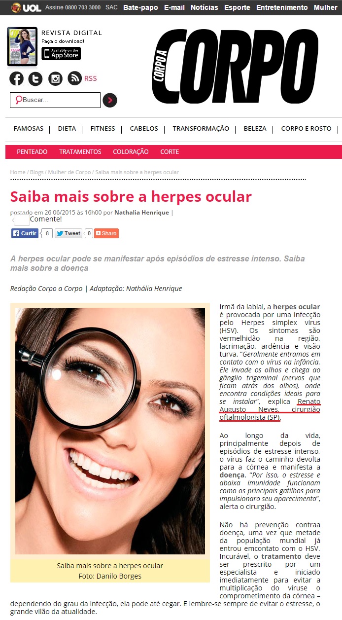 REVISTA CORPO A CORPO (ONLINE) - Saiba mais sobre a herpes ocular