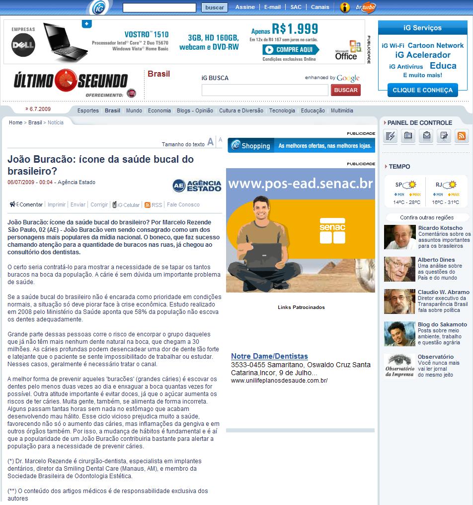 Portal IG (Último Segundo) - João Buracão: ícone da saúde bucal do brasileiro?
