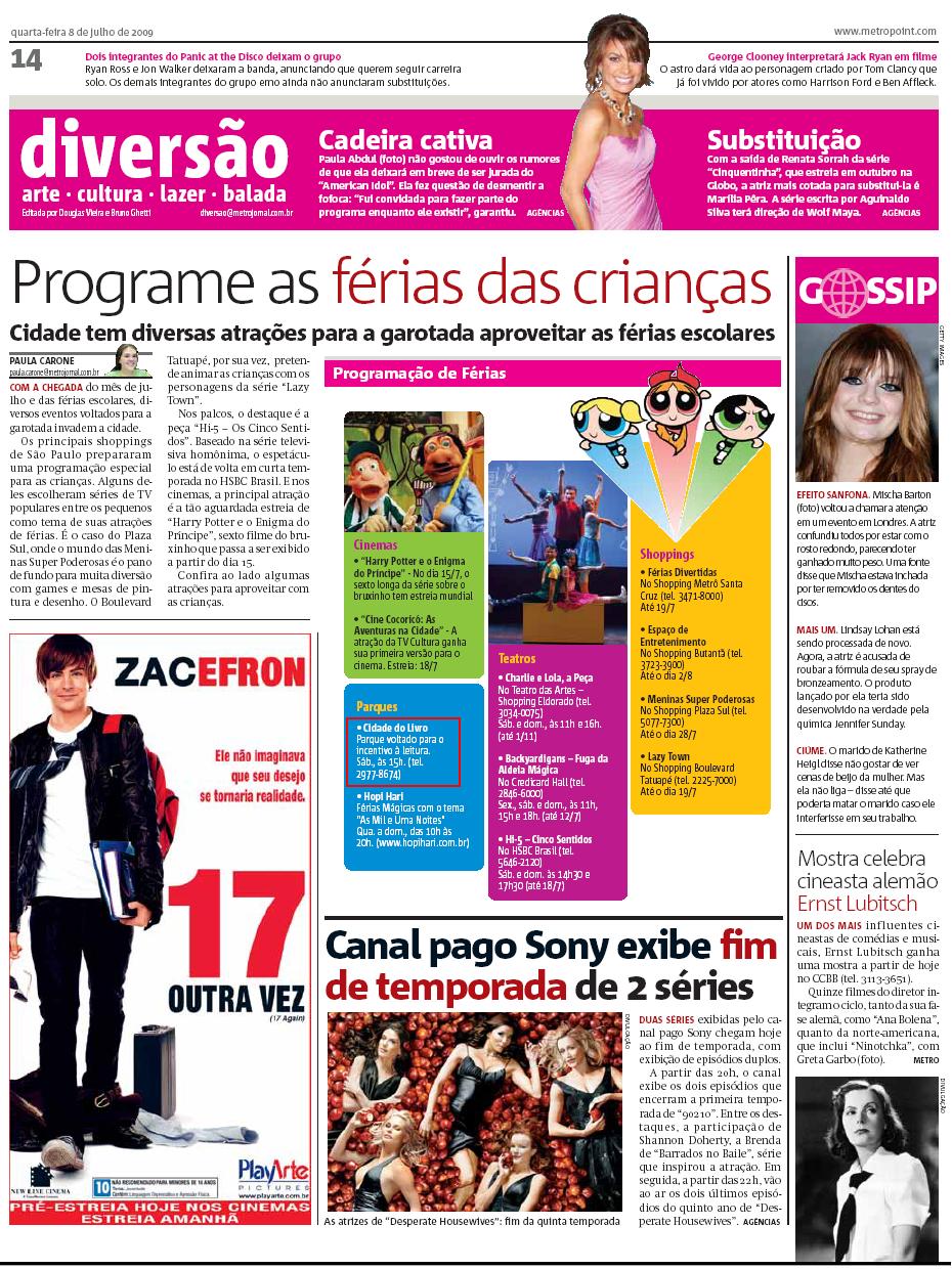 Jornal Metro (8 Jul) - Programe as férias das crianças