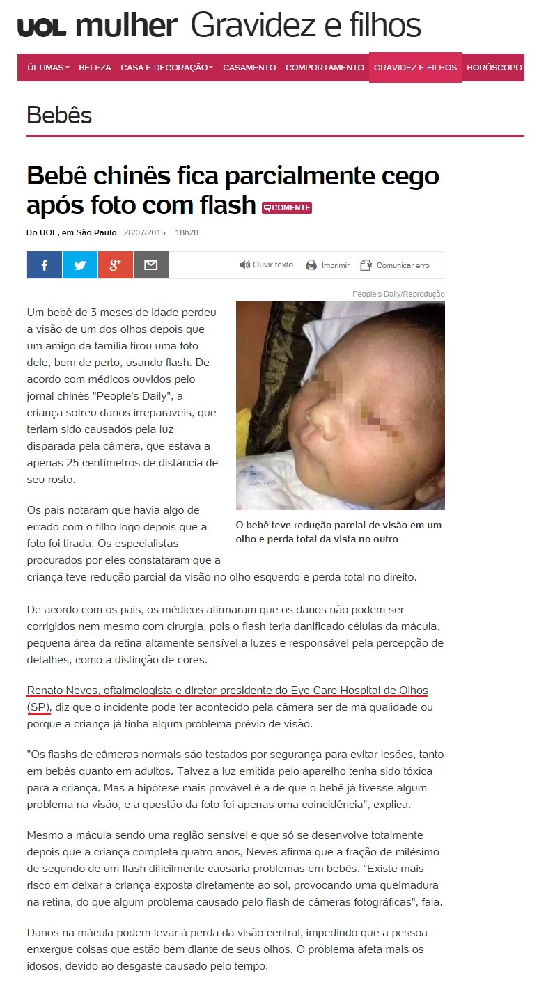 PORTAL UOL - Bebê chinês fica parcialmente cego após foto com flash