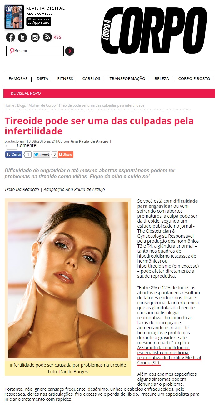Clipping REVISTA CORPO A CORPO (ONLINE) - Tireoide pode ser uma das culpadas pela infertilidade 14/08/2015