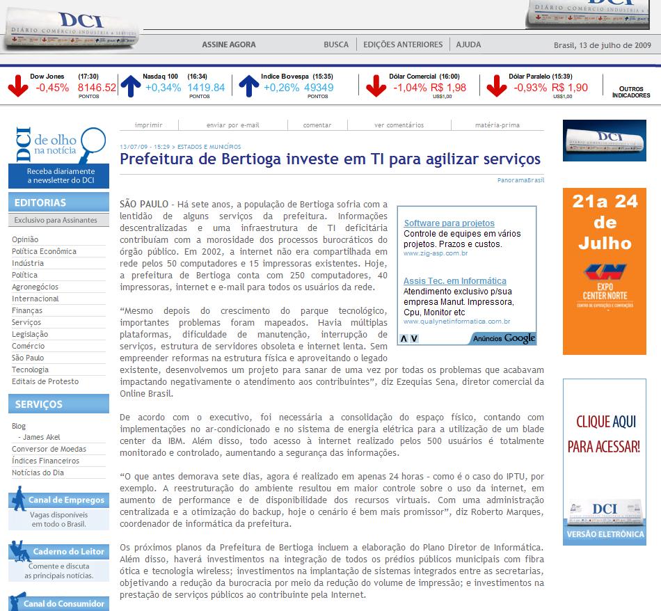 Jornal DCI digital - Prefeitura de Bertioga investe em TI para agilizar serviços