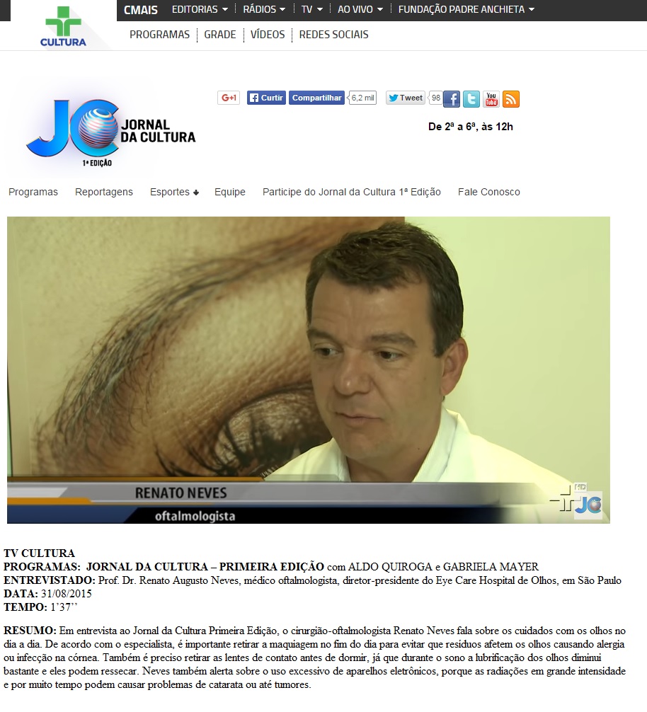 JORNAL DA CULTURA 1ª EDIÇÃO (TV CULTURA) - Entrevista com Dr. Renato Neves
