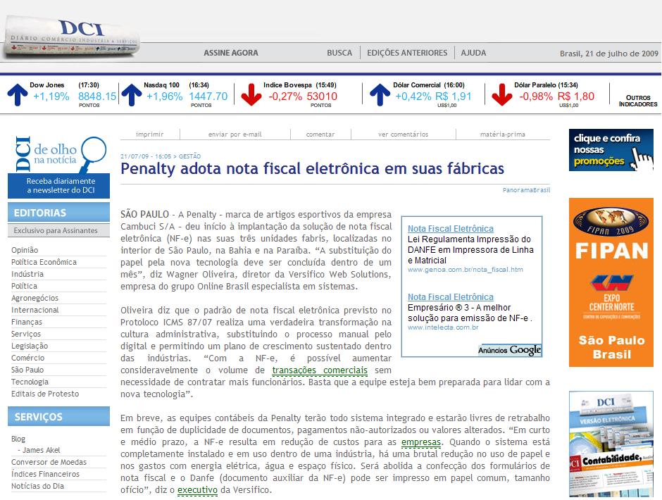 Jornal DCI digital - Penalty adota NF-e em suas fábricas