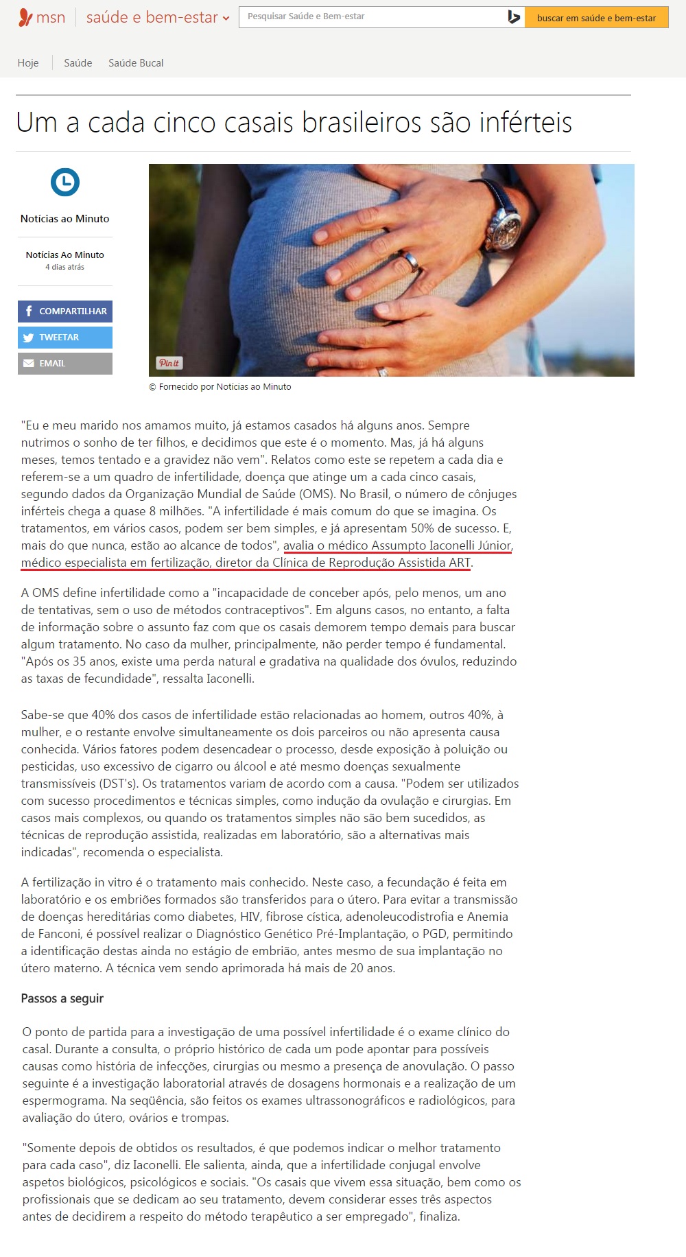 PORTAL MSN - Um a cada cinco casais brasileiros são inférteis