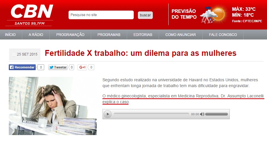 RÁDIO CBN - Fertilidade x trabalho: um dilema para as mulheres