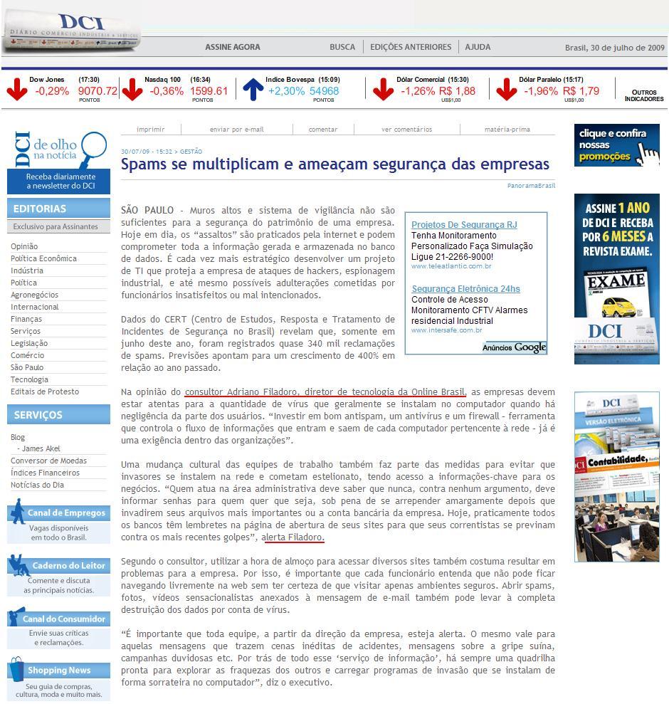 Jornal DCI digital - Spams se multiplicam e ameaçam segurança das empresas