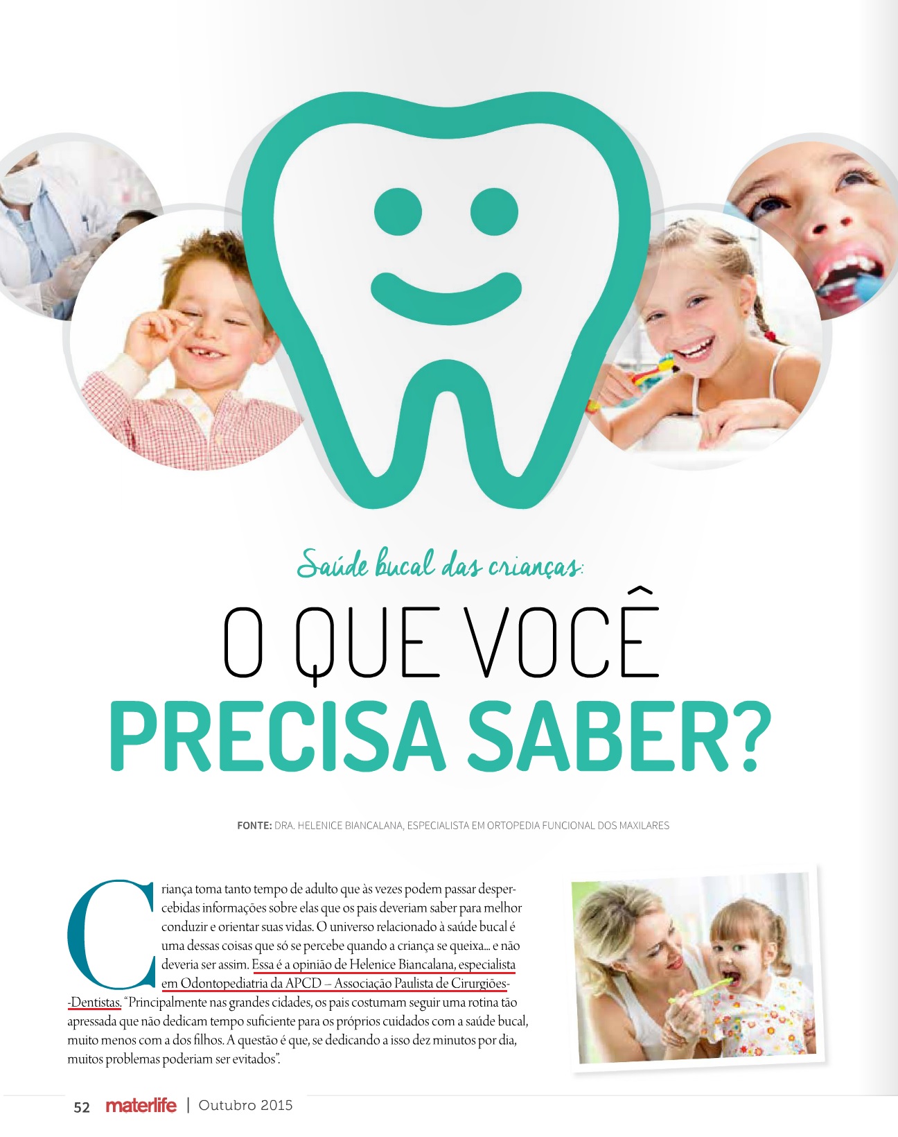 Clipping REVISTA MATERLIFE (IMPRESSO) - Saúde bucal das crianças: O que você precisa saber? 09/10/2015